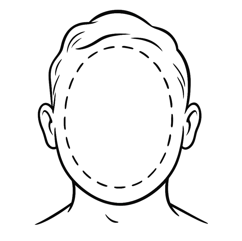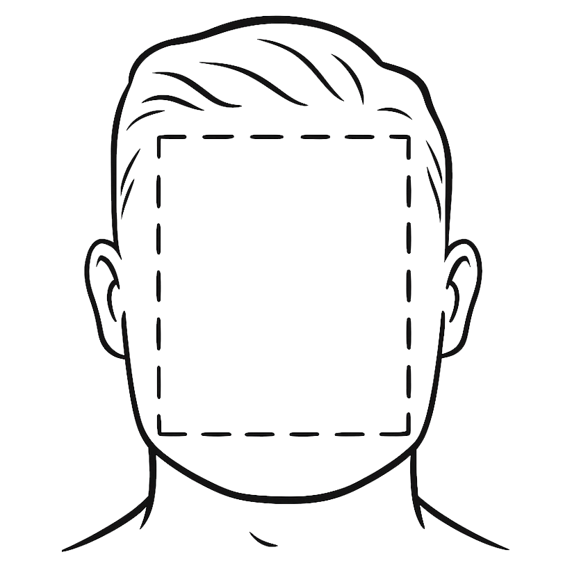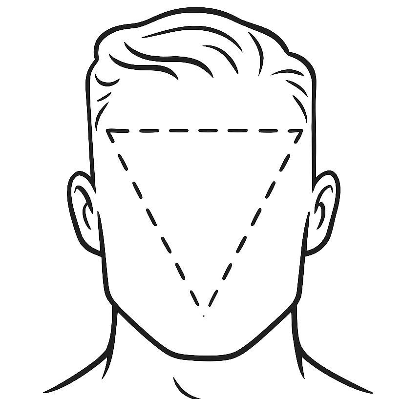 Com ângulos marcantes e maxilar bem definido, o rosto quadrado possui proporções semelhantes entre largura e comprimento, transmitindo força e personalidade.